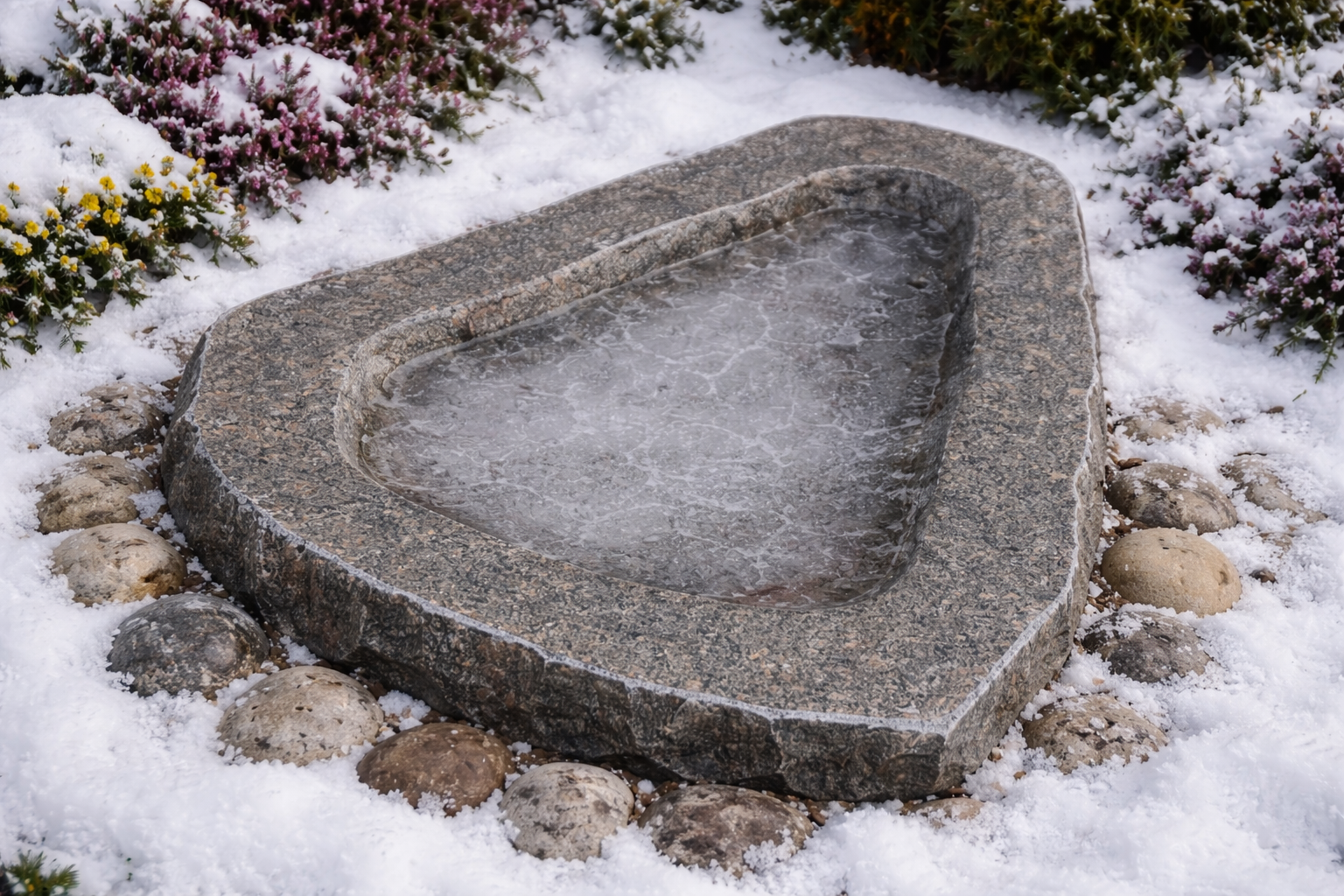 Granit er et ekstremt holdbart naturmateriale, der tåler frost, regn og vind året rundt, og fuglebadet kræver ingen vedligeholdelse. Den lave, rummelige skål gør det nemt for både små og større fugle at bade og drikke.