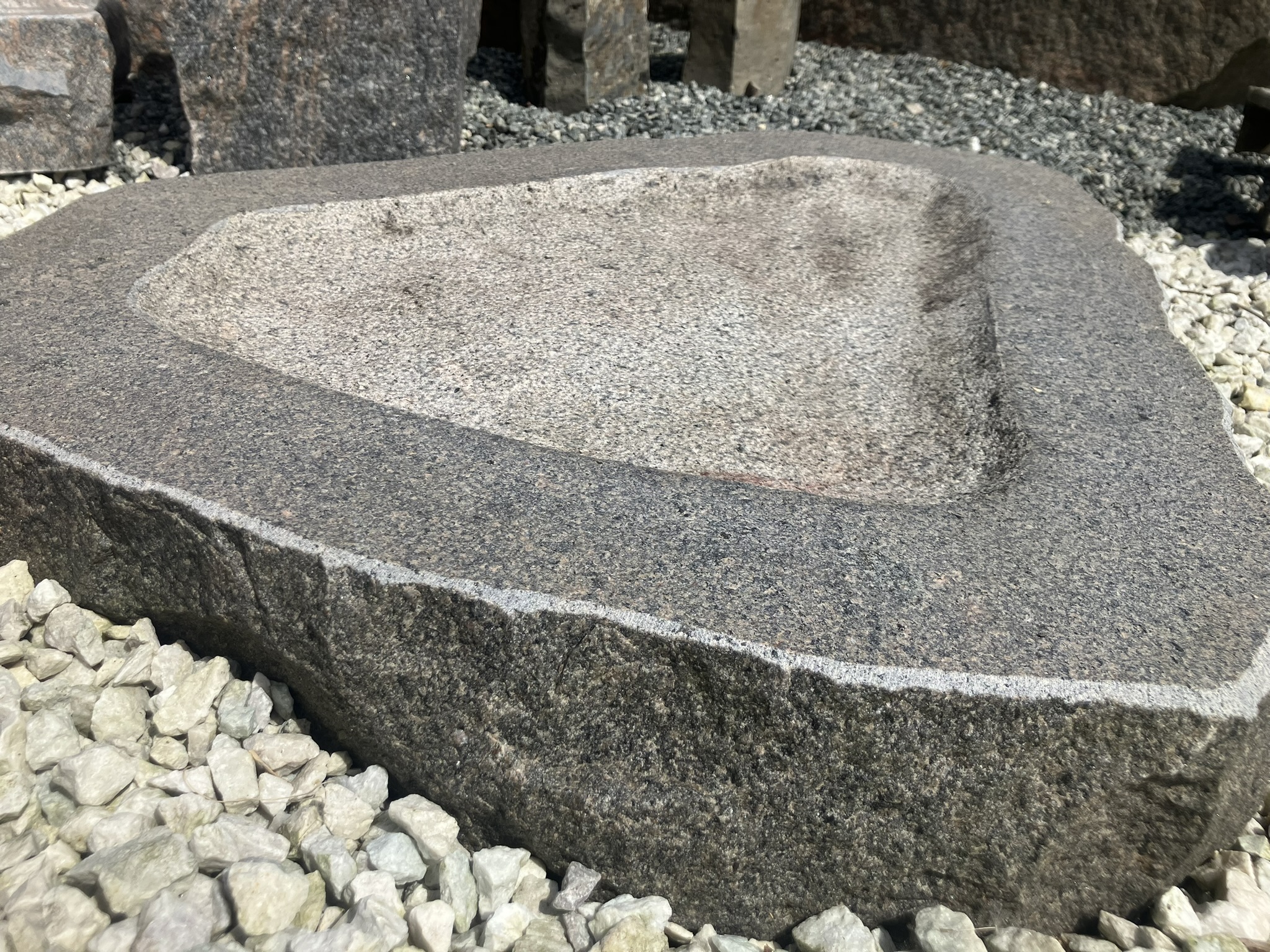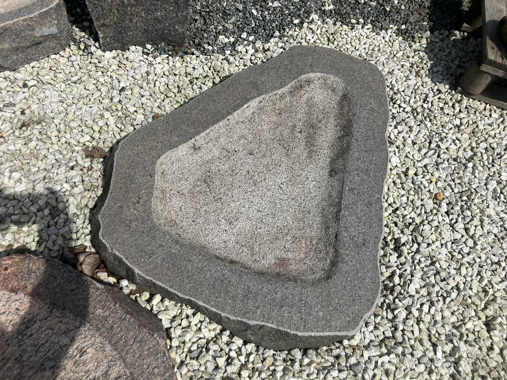Dette smukke fuglebad er udført i massiv granit og formet med en blød, organisk silhuet, der passer naturligt ind i haven. Skålen er håndbearbejdet med en let ru overflade, som giver et autentisk og råt udtryk – samtidig med at den er skridsikker for fuglene.