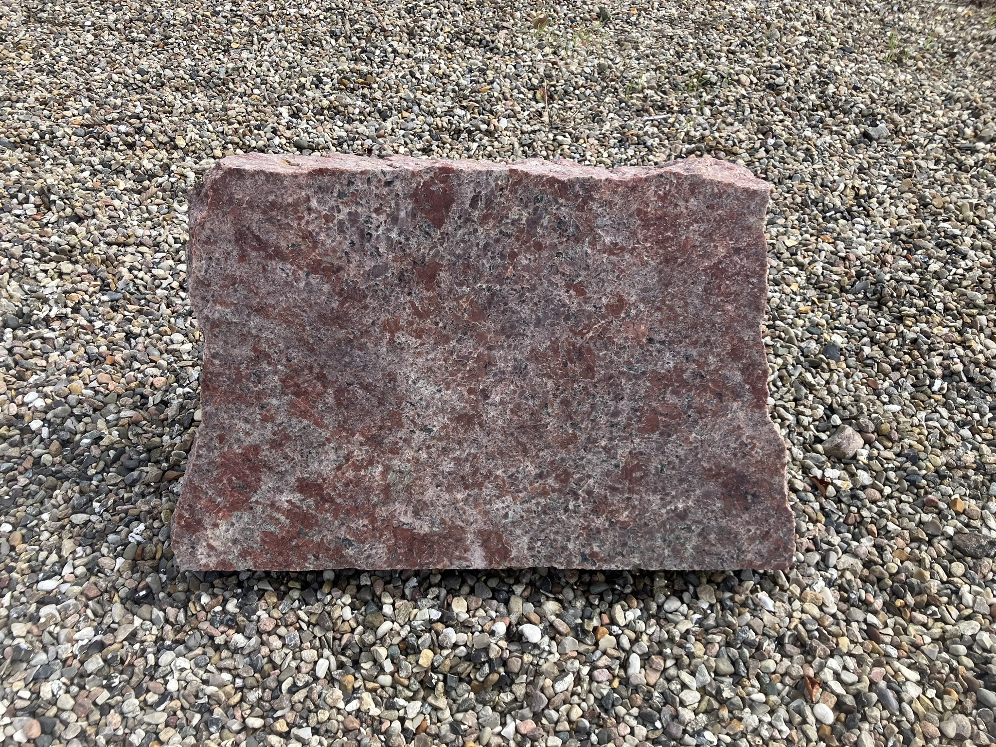 Feldspalt Granit er kendt for sin røde farve, styrke og modstandsdygtighed over for vind og vejr. Den polerede finish fremhæver granittens naturlige struktur og giver stenen et roligt og værdigt udtryk.