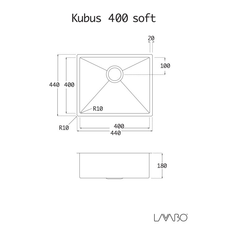 Lavabo Kubus 400 Soft køkkenvask – 44 x 44 cm, rustfrit stål