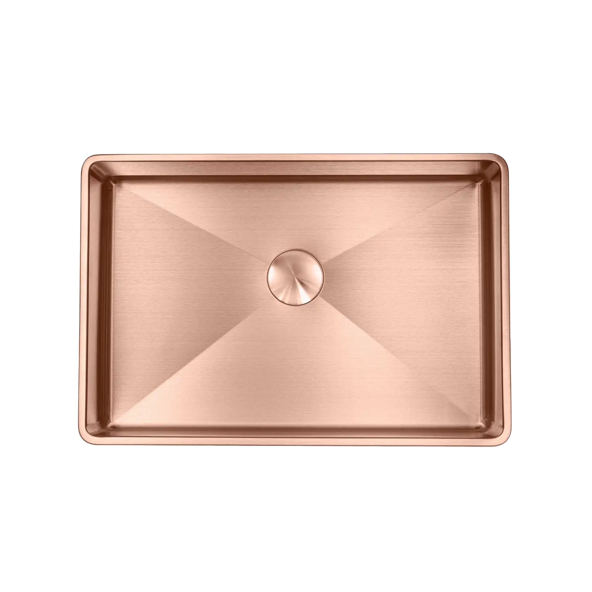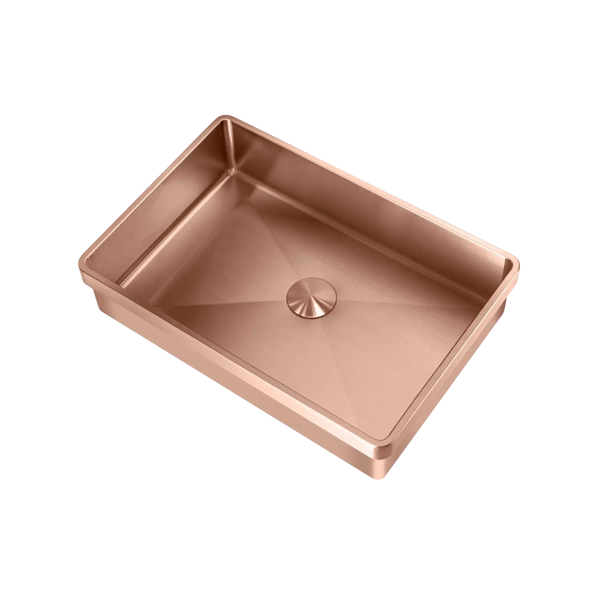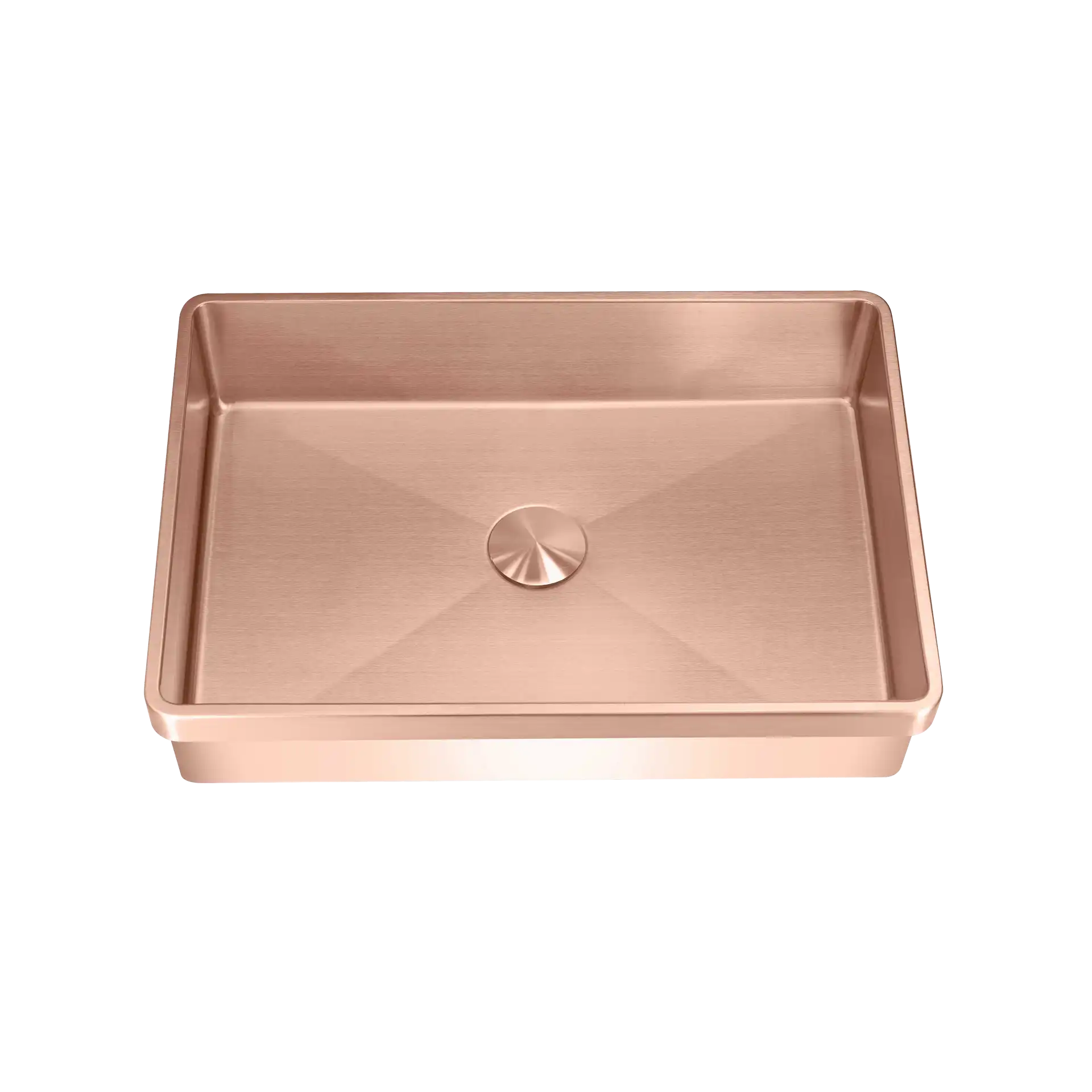 Fremstillet i rustfrit stål med trykpåført PVD* overflade behandling i farven kobber.